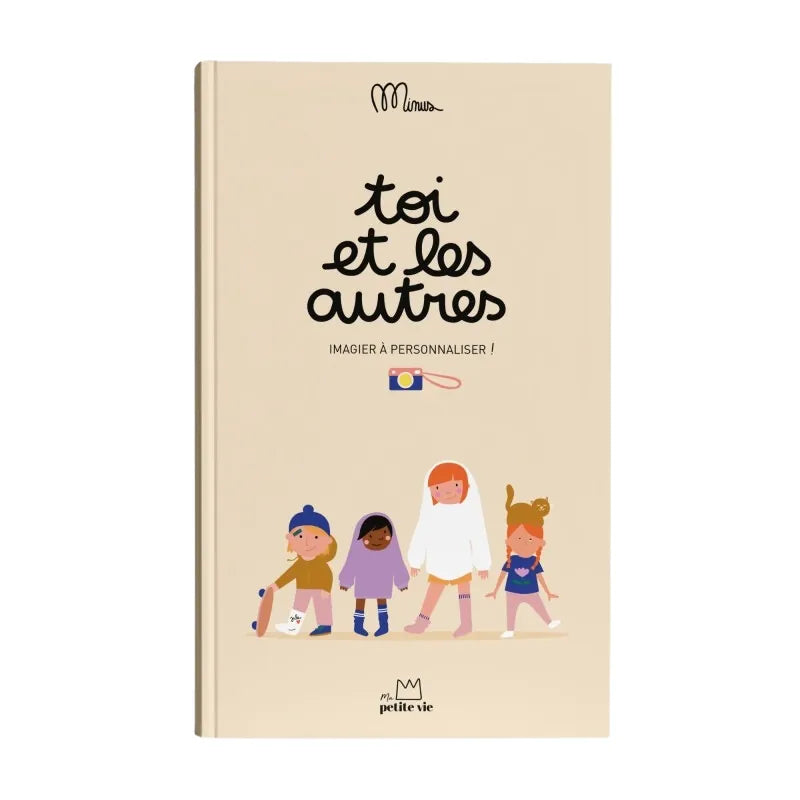 Découvrez l'Imagier à compléter Toi et les autres MINUS Éditions. Avec plus de 2 milliards d'enfants sur Terre, chacun vit une histoire unique ! Inspiré par l’adage “il faut tout un village pour élever un enfant". Ce livre imagier coloré et interactif, explore les différentes personnes qui entourent et façonnent la vie des tout-petits. Chaque page est illustrée avec des personnages amusants et propose des questions ouvertes pour éveiller la curiosité des enfants et lancer des discussions enrichissantes. En complétant ensemble avec des photos personnelles et des souvenirs, cet imagier devient un véritable album unique, capturant les moments précieux de la petite enfance. Parcourez le livre avec votre enfant pour lui montrer la diversité des personnes dans son entourage : grands-parents, nounous, héros, cousins, etc. Ensuite, personnalisez chaque page en ajoutant des photos de vos proches pour créer un souvenir unique.
