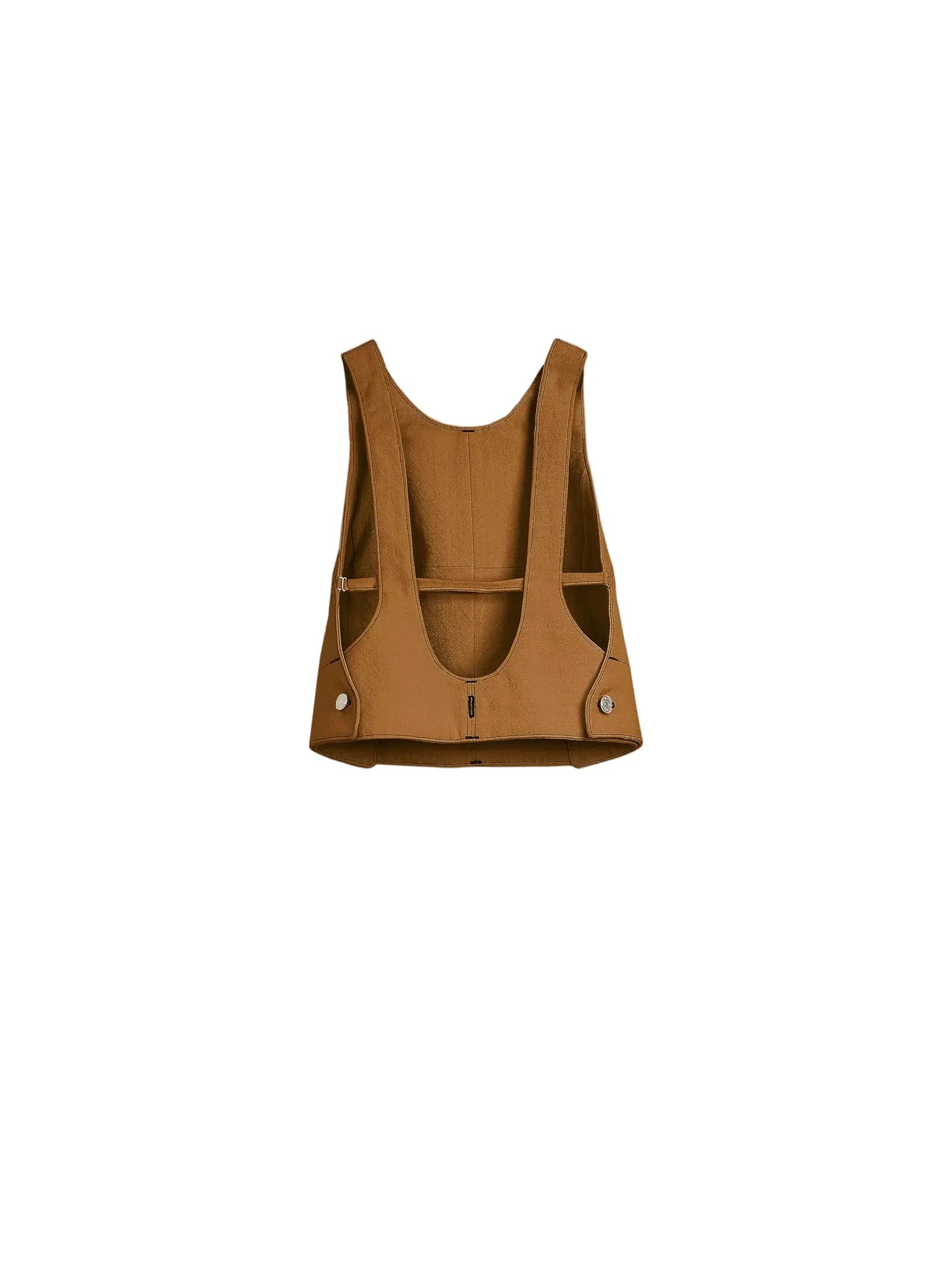Préparez-vous à l'effet "Wahou". Le haut Dos Nu Chicorée est la pièce la plus surprenante de la collection Claudia Carmona. Sous son col rond ras-de-cou ultra-sage se cache un décolleté dos magistral, maintenu par une bride ajustable. Mais là où il devient génial, c’est qu’il est le cerveau de vos transformations : clipsez-le à la jupe pour créer la robe "La Pitchoune", ou au pantalon pour la salopette "La Folie".