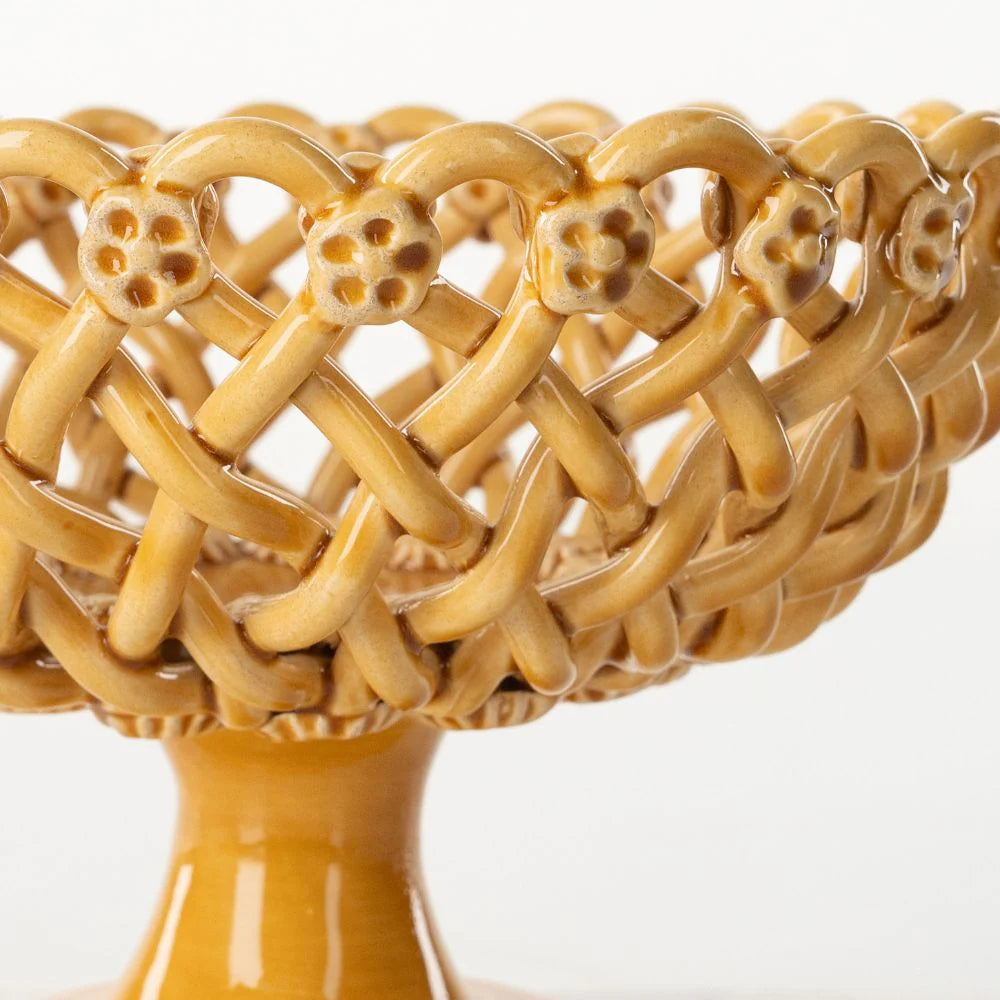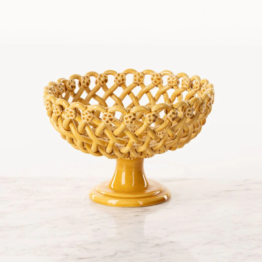 Cette corbeille tressée à la main sur pied est une pièce iconique de Maison Pichon Uzès, revisitée ici dans des teintes plus franches, plus contemporaines.