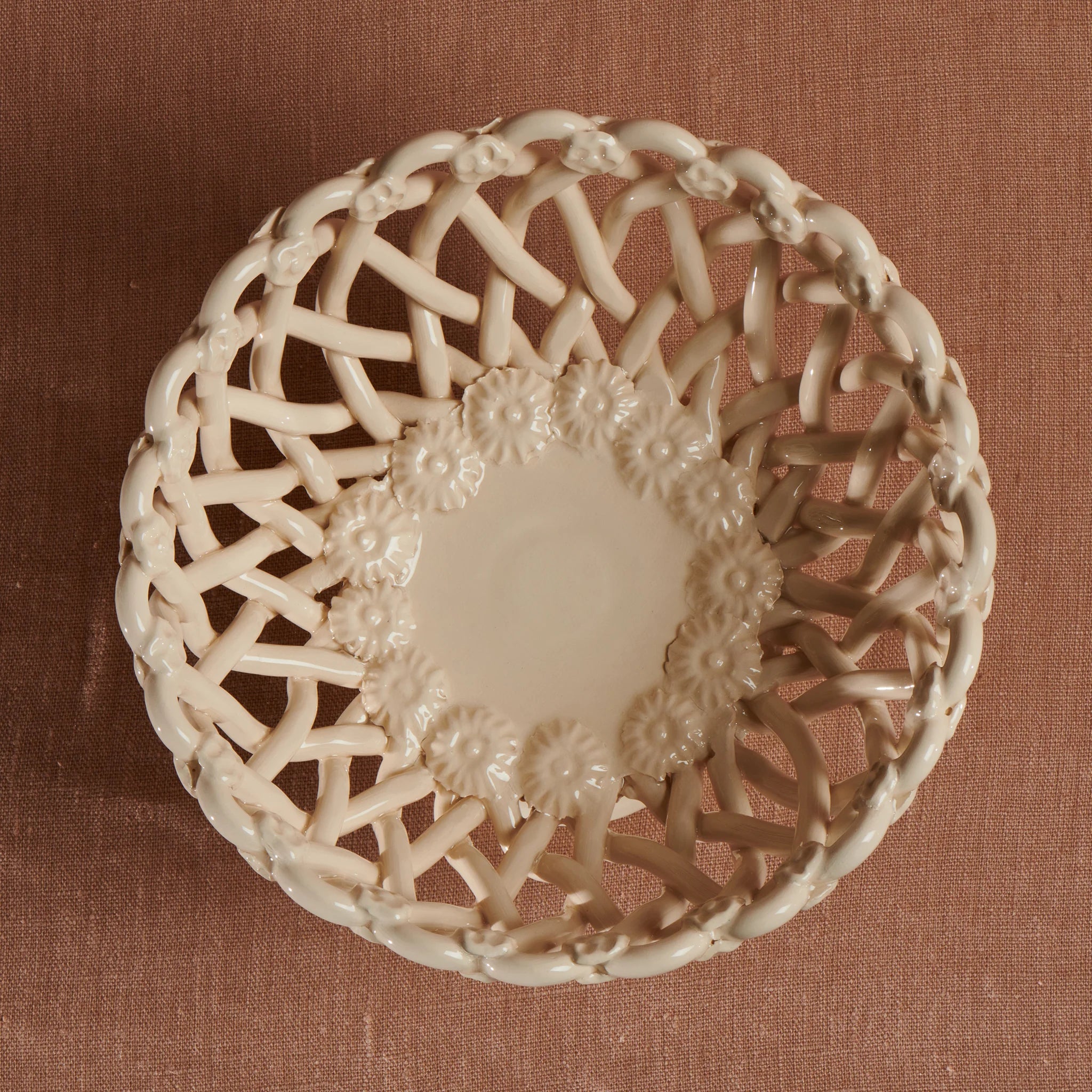 Les fleurettes laissent place à des boutons en relief, apportant une touche graphique et résolument moderne. En corbeille à fruits, sur une table ou un plan de travail, ou même vide, dans son plus simple appareil, elle s’impose comme un objet décoratif fort, à la fois utile et sculptural.