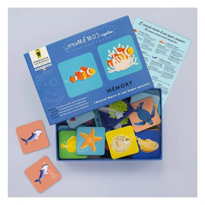 Pirouette Cacahouète dévoile un mémory pas comme les autres : ici, les paires ne sont pas identiques ! L’enfant doit associer chaque animal marin à son super-pouvoir, pour une expérience de jeu aussi amusante qu’éducative. Ce jeu développe la mémoire, la logique et le sens de l’observation tout en éveillant la curiosité autour de la vie marine.