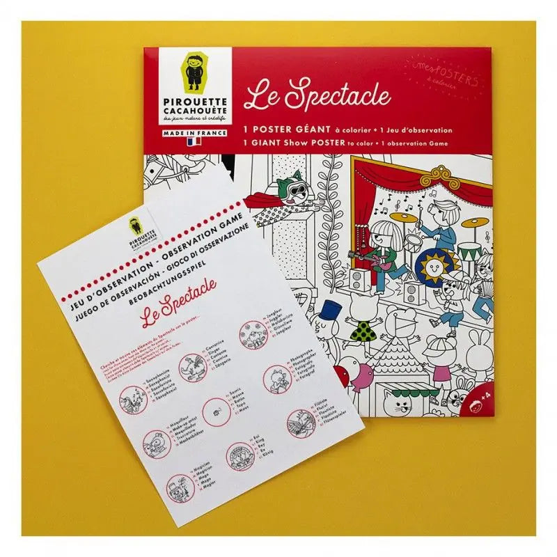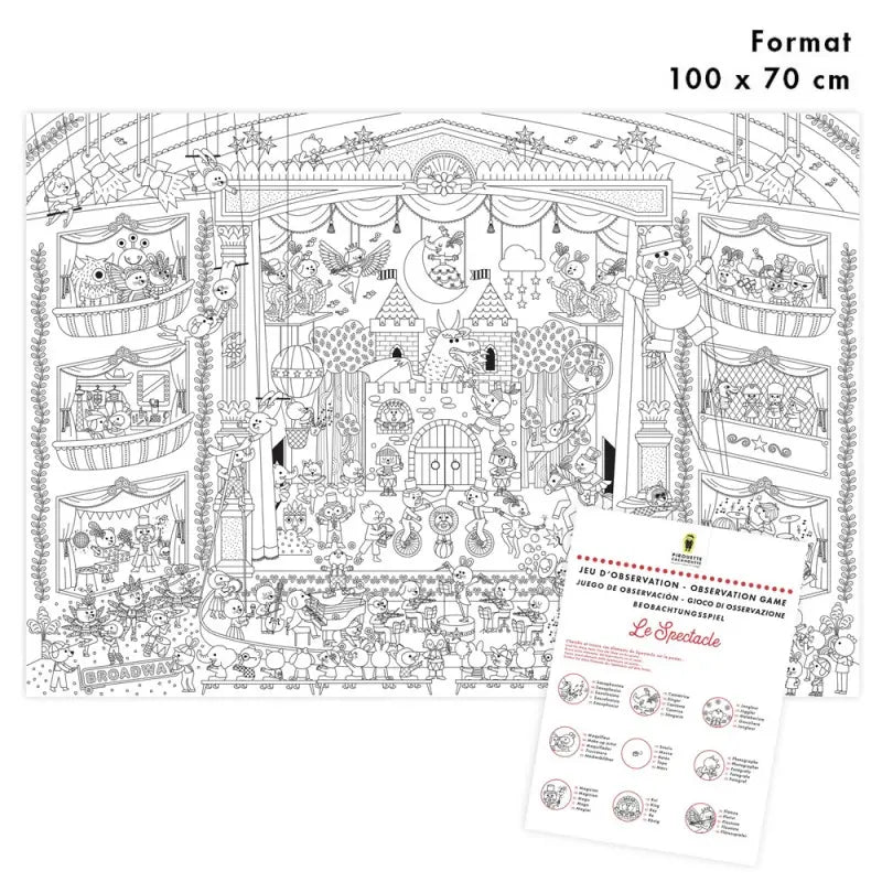 Découvrez le poster géant à colorier Spectacle, un coloriage XXL fabriqué en France. Pirouette Cacahouète dévoile son grand poster à colorier sur le thème du Spectacle : danseurs, acrobates, musiciens, rockeurs… une scène vivante et pleine de détails à explorer. Parfait pour… Une fête d’anniversaire, un après-midi créatif, ou un moment calme en famille.