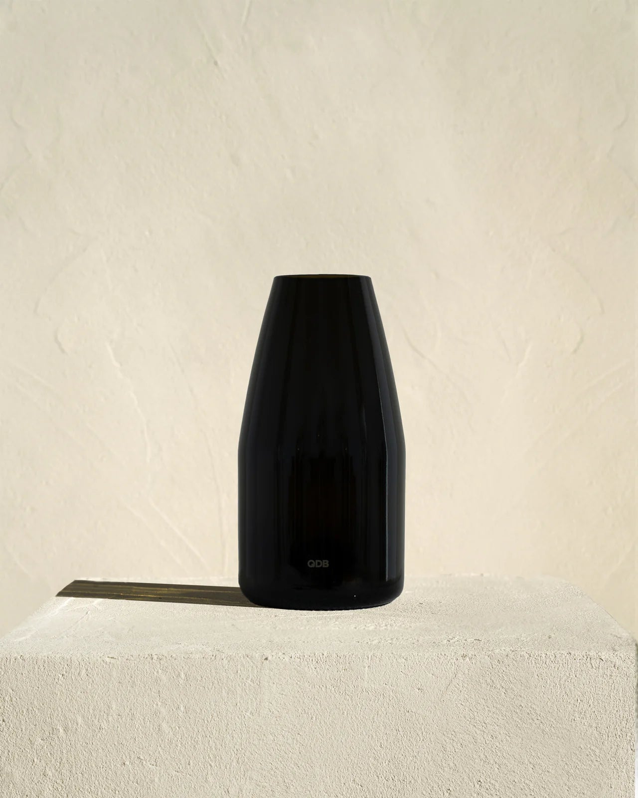 En coupant une bouteille pour en faire un verre, QDB recycle le verre mais invente aussi une toute nouvelle histoire. Verres, vases, coquetiers, bougies: sous son apparente simplicité, chaque pièce est unique.