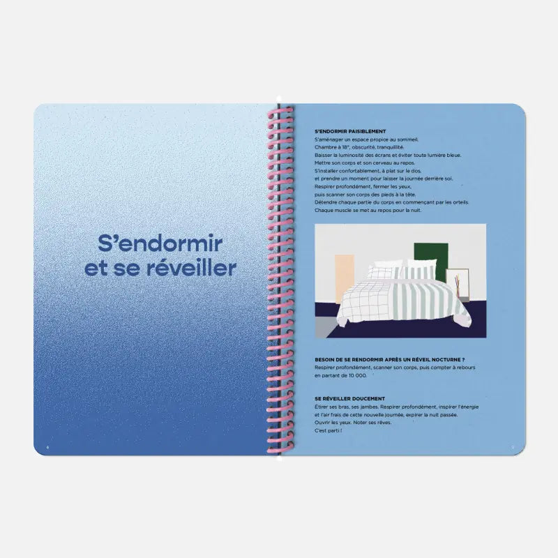 Édité en collaboration avec  Bonsoirs le spécialiste des draps, ce carnet regorge de fiches pratiques et de conseils pour se coucher moins bête.