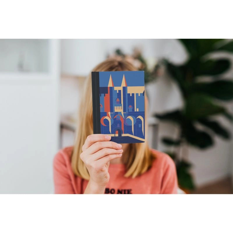 Tout d'abord, notre carnet Palais de Nuit est une véritable ode à la cité des Papes. En effet, celle-ci est magnifiquement illustrée à travers un design graphique et lumineux exclusif. Par ailleurs, veuillez noter (sans mauvais jeu de mots), la couverture cartonnée souple de ce carnet. Cette couverture apporte une protection optimale à vos notes et croquis. Tandis que les pages pointillées et numérotées vous permettent de vous organiser selon vos envies. Pour finir, une reliure cousue collée vous garanti que les pages resteront solidement en place, même après une utilisation intensive.