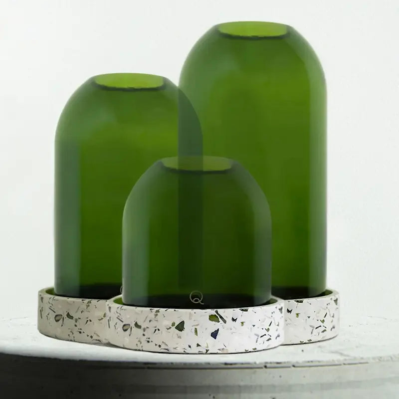 En coupant une bouteille pour en faire un verre, QDB recycle le verre mais invente aussi une toute nouvelle histoire. Verres, vases, coquetiers, bougies: sous son apparente simplicité, chaque pièce est unique.