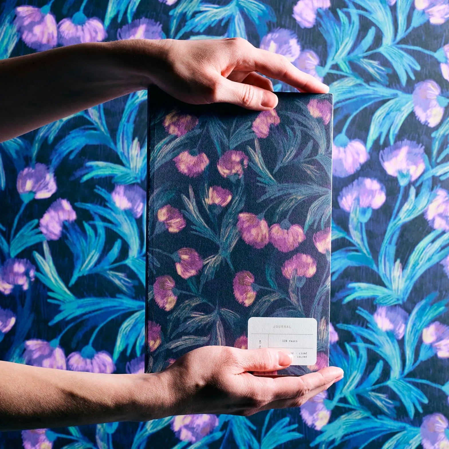 Plongez dans l'univers mystérieux du motif Alba. Entre grâce botanique et clair-obscur, de grands chardons s'entrelacent avec volupté, révélant des éclats de parme et de bleu-vert sur un fond sombre et élégant. Sublimé par une dorure à chaud, ce journal de 128 pages est l'écrin idéal pour recueillir vos mots, vos projets et vos inspirations les plus précieuses.