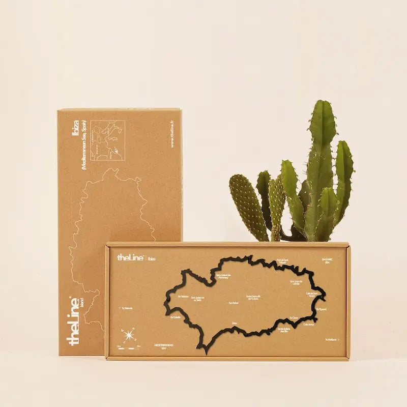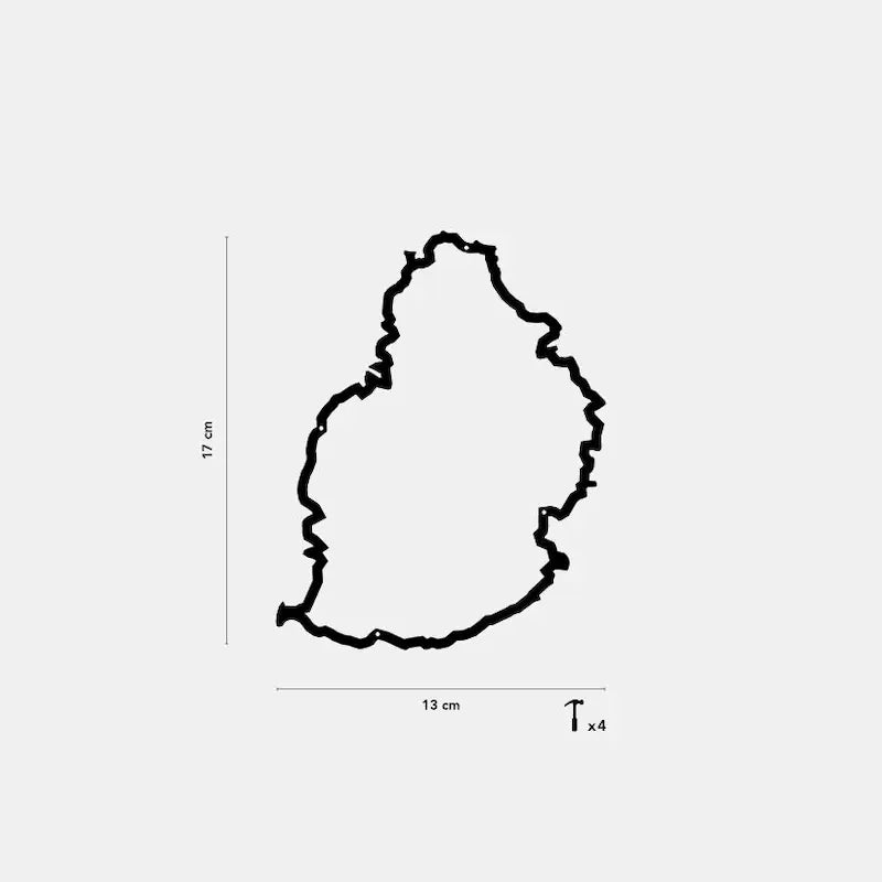 La silhouette de l’Île d'Ibiza est représentée vue du ciel. On y voit d'Ouest en Est et du Nord au Sud, entre autre : le cap Malheureux, Port-Louis, les Quatre Bornes, Souillac, Mahébourg et le trou d'eau douce. Les silhouettes murales sont fabriquées en France, en acier epoxy, matériau recyclable à l’infini. Munissez vous d’un marteau et le tour est joué !
