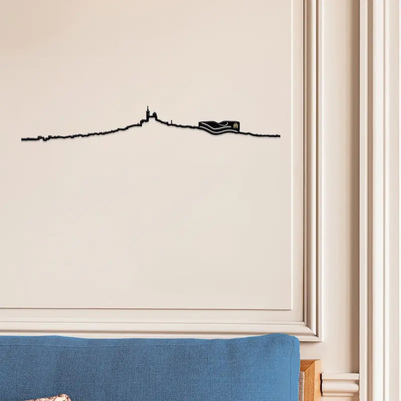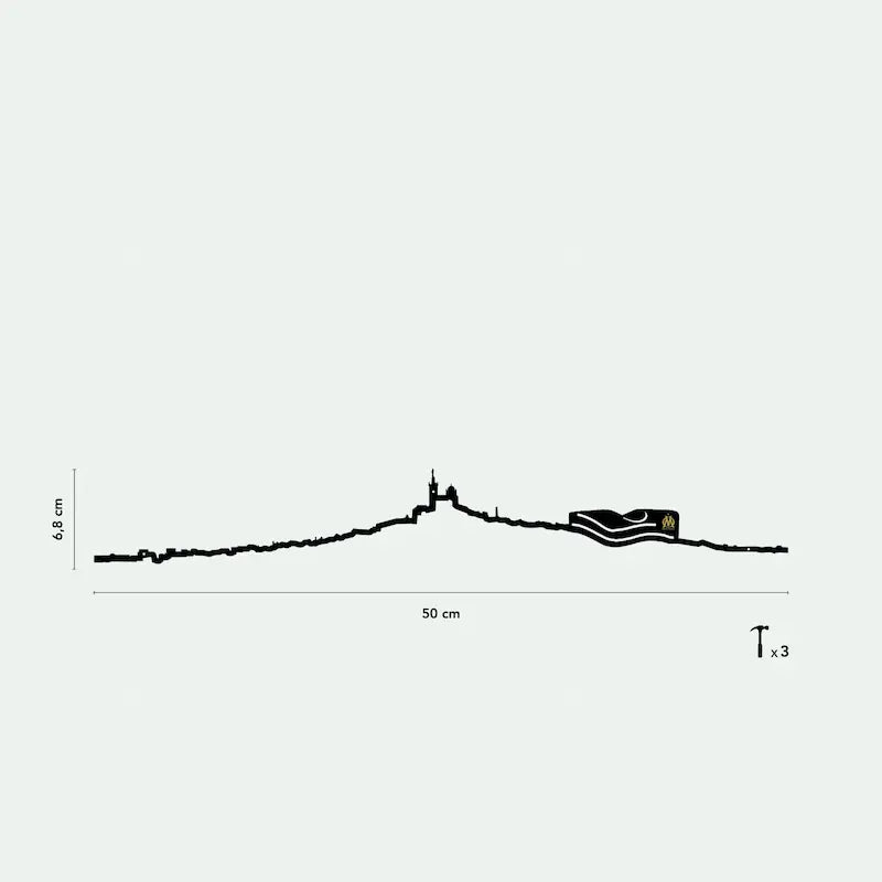 Découvrez la silhouette murale The Line Olympique de Marseille. Cette silhouette minimaliste met en avant deux icônes marseillaises : Notre-Dame de la Garde et le stade Orange Vélodrome. Disponible en trois formats, ce produit exclusif est un hommage aux amoureux de la ville et aux fervents supporters de l'OM. Fabriqués en France, la silhouette murale est facile à installer ! Un marteau et trois clous (fournis) suffisent. Enfin, vous pouvez fixer la ligne au mur en intérieur comme en extérieur. Attention toutefois, cette ligne n’est pas adaptée pour les murs en brique ou en béton.