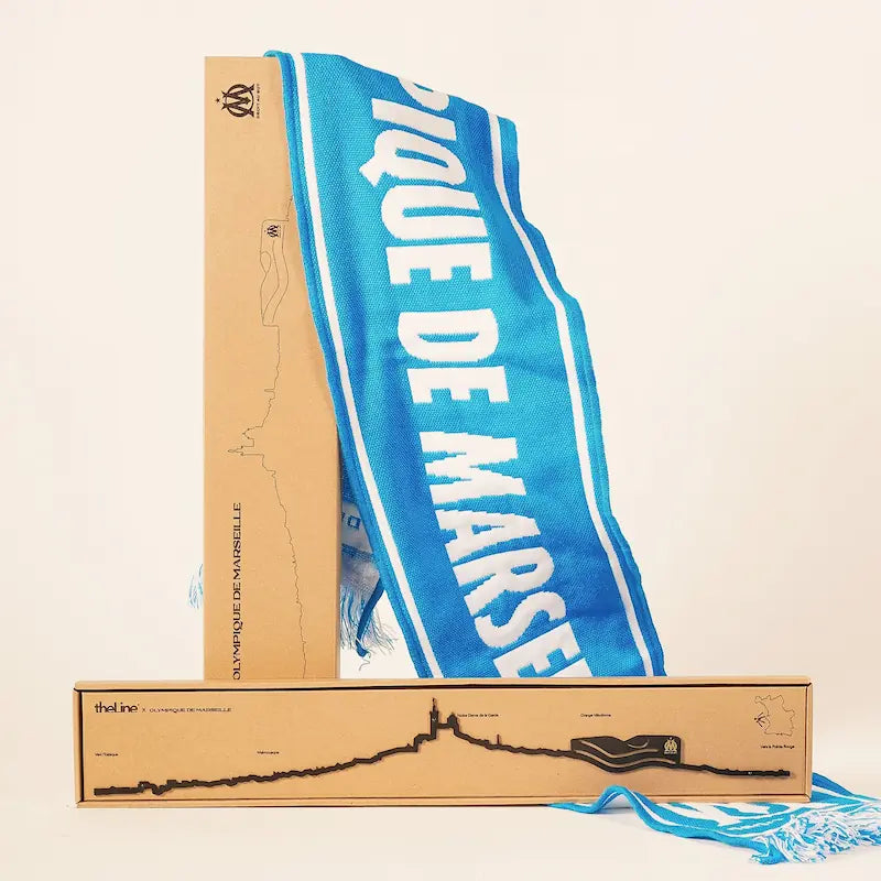 La collaboration entre The Line et l'Olympique de Marseille représente la fusion de deux passions : l'amour pour la ville de Marseille et l'engouement des Marseillais pour ce club légendaire qui célèbre ses 125 ans cette saison. Les produits issus de cette collaboration exclusive sont fabriqués à moins de 20 km de Marseille, en matériaux recyclés et recyclables, sans une seule goutte de plastique, le tout conditionné par une entreprise d'insertion.