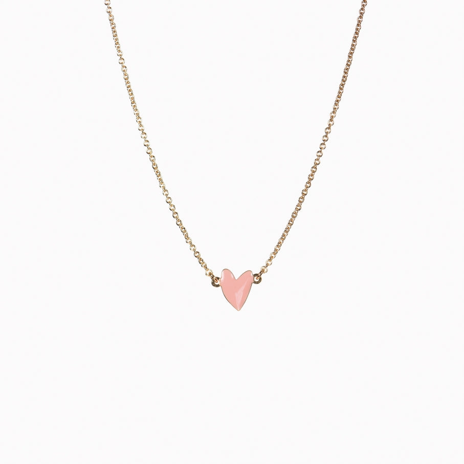 Collier en laiton doré à l'or fin 24 carats et coeur en résine pêche rosé
