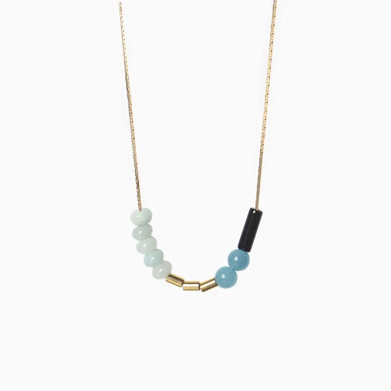 Craquez pour le collier Lafayette Titlee. Celui-ci mixe perles de diamètres, couleurs et formes variées. Les pierres semi-précieuses étant des matières naturelles, leur couleur et opacité peuvent varier.