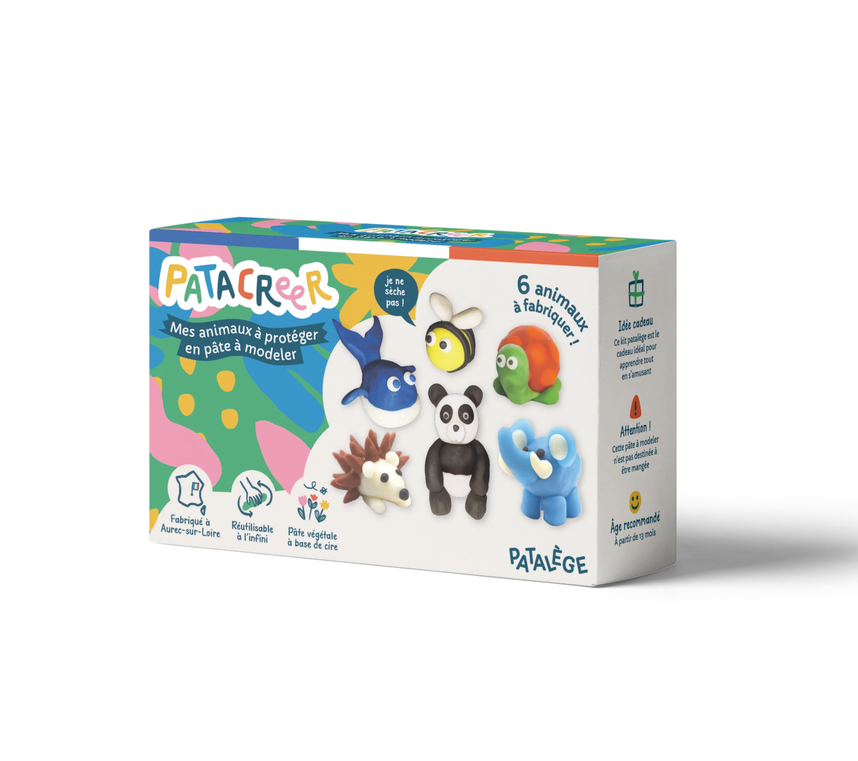 Initiez votre enfant à une activité manuelle créative et responsable avec le kit PATALEGE « Mes 6 animaux à protéger ». Cette pâte à modeler végétale, réutilisable à l’infini et fabriquée en France, permet aux enfants dès 3 ans de façonner l’abeille, la baleine, la tortue, le panda, le hérisson et l’éléphant tout en se sensibilisant à la protection de la nature.