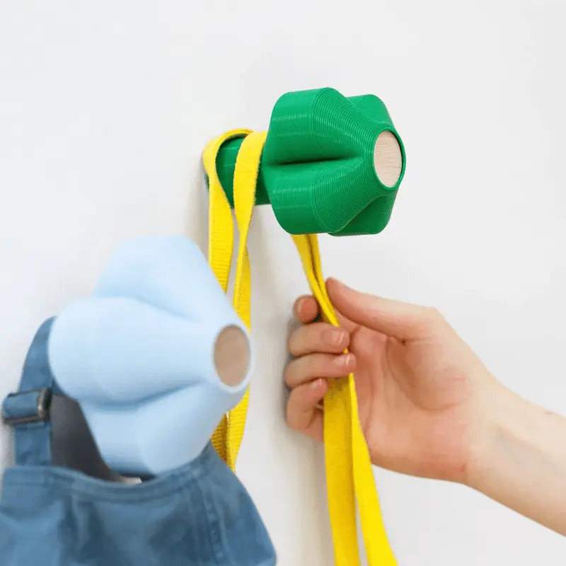 Découvrez le duo de patères Amy Warren & Laeticia. En effet, Amy est une patère colorée qui apporte une touche décorative et fun à votre intérieur. De plus, ce lot comprend deux patères de tailles différentes, parfaites pour suspendre cintres, vestes, sacs et autres accessoires du quotidien. Enfin cet objet est fabriqué en impression 3D à partir de bouteilles plastiques recyclées et recyclables ainsi qu’en bioplastique compostable industriellement fait à partir d’amidon de maïs (rPETG + PLA).