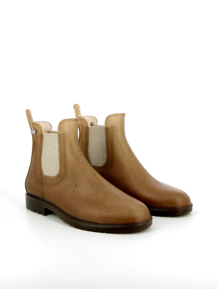 Place à l'innovation avec la Jumpnat, la bottine de pluie qui utilise les matières premières de demain. Ce modèle révolutionnaire intègre des fibres de chanvre naturelles mêlées au PVC pour créer une texture unique et une teinte "caramélisée" obtenue naturellement lors du processus de fabrication. Entièrement fabriquées en France, ces bottines allient style urbain et conscience écologique. Avec leur semelle intérieure en liège pour un confort thermique d'exception et leur imperméabilité totale, elles sont prêtes à vous accompagner pendant les 15 prochaines années. Une démarche 100% recyclable, sans phtalates, pour garder les pieds au sec avec panache.