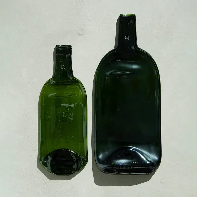 La planche médium Débattre QDB est façonné à partir d’une bouteille bordelaise aux teintes vertes qui a été chauffée pour en moduler la forme. En effet, rien ne se perd et tout se transforme chez QDB ! Suite au thermoformage, l’aspect du verre peut changer. Certaines bouteilles peuvent être plus aplaties que d’autres et plus ou moins brillante ou satinée. De ce fait, chaque pièce est unique et peut présenter des irrégularités au niveau des dimensions et de l’aspect.
