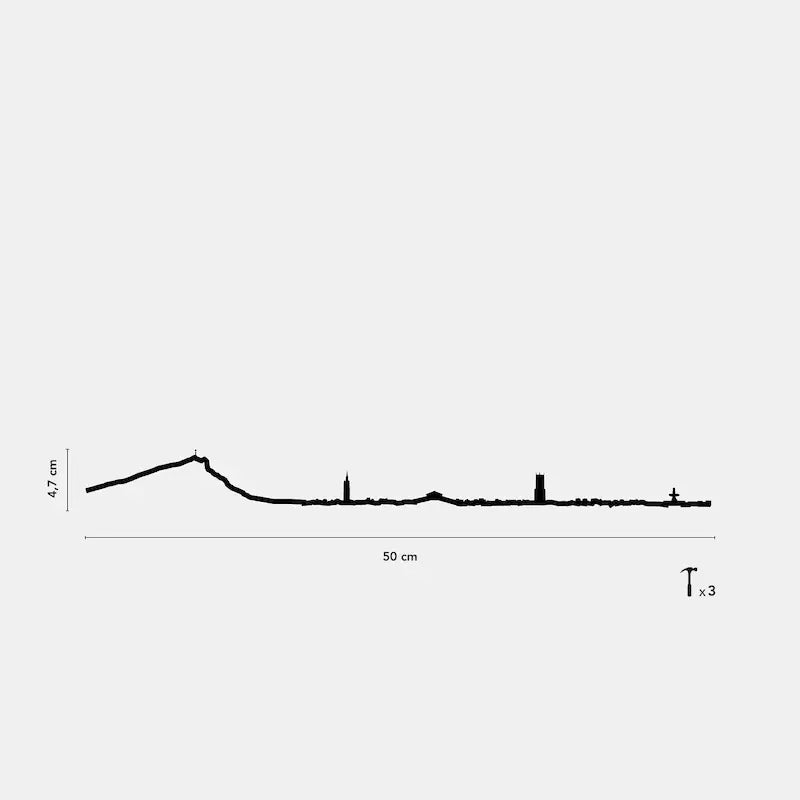 La silhouette murale The Line Aix en Provence en acier est une décoration murale unique. La vue est représentée depuis le point de vue de Saint-Eutrope. On peut y voir la Sainte Victoire, l'église de Saint Jean de Malte, le Palais de Justice, la Cathédrale Saint Sauveur et la fontaine de la Rotonde. La ligne en acier de 1,5 mm d’épaisseur est facile à installer avec seulement 3 clous. D'autre part, la silhouette murale peut être fixée à la fois en intérieur et en extérieur. Ainsi, cela ajoute une touche de charme naturel à votre espace de vie. Enfin, la pose est super facile, vous pouvez simplement clouer la ligne au milieu et régler le niveau en conséquence. Cependant, il est important de noter que ce produit n'est pas adapté pour les murs en brique ou en béton.