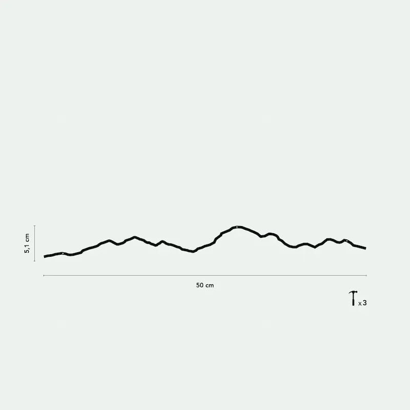 La ligne en acier de 1,5 mm d’épaisseur est facile à installer avec seulement 3 clous. D'autre part, la silhouette murale peut être fixée à la fois en intérieur et en extérieur. Ainsi, cela ajoute une touche de charme naturel à votre espace de vie. Enfin, la pose est super facile, vous pouvez simplement clouer la ligne au milieu et régler le niveau en conséquence. Cependant, il est important de noter que ce produit n'est pas adapté pour les murs en brique ou en béton.