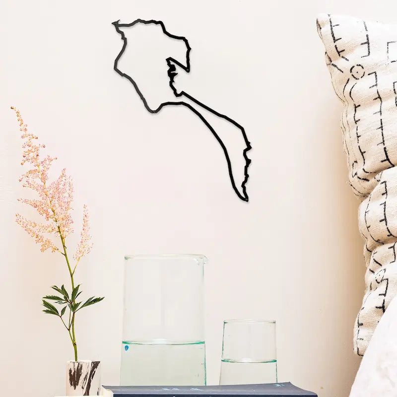 La silhouette murale The Line Noirmoutier en acier est une décoration murale unique. En effet, celle-ci représente Noirmoutier vue du ciel. On y voit entre autre : le plage de Luzéronde, les Marais Salants, le Port de Morin, la plage des Dames, le golfe de Gascogne, la fosse et le passage du Gois.