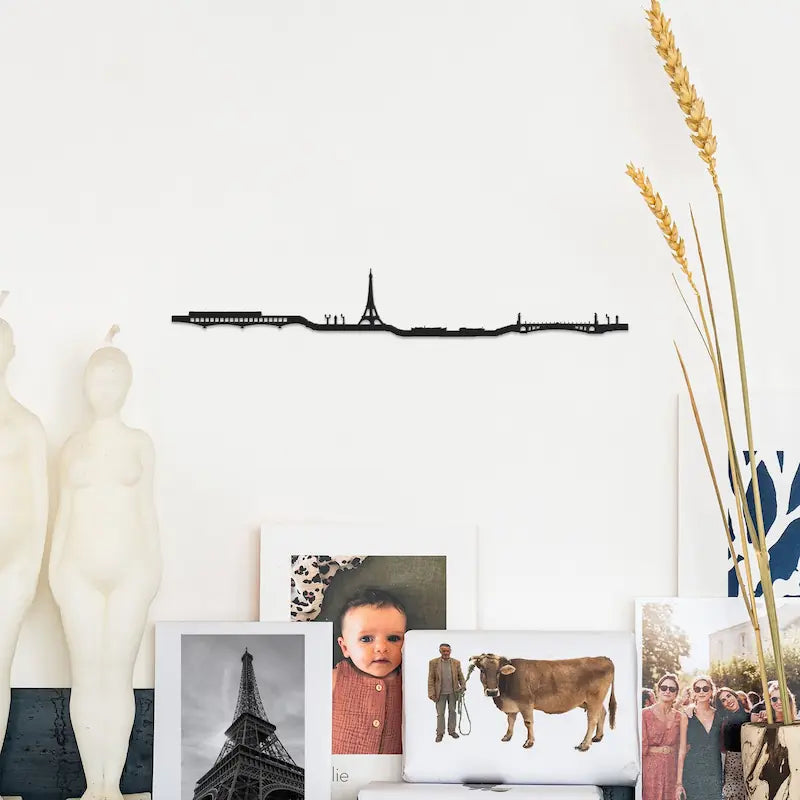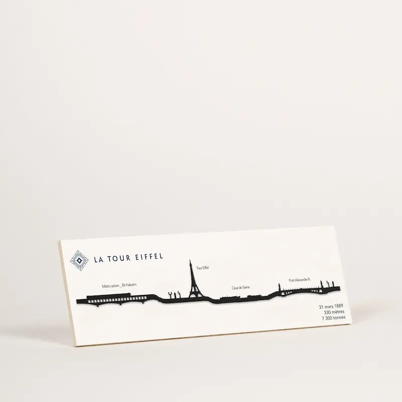 Mini silhouette de Paris Tour Eiffel découpée en acier et fabriquée en France de manière responsable. Cette collaboration unique mêle le style minimaliste de The Line à l’icône incontournable de Paris, mettant en lumière la Dame de fer avec le métro aérien et le pont Bir-Hakeim, les quais de Seine et le Pont Alexandre III.... À collectionner sans limite !