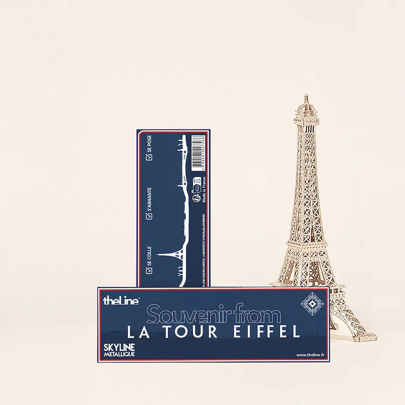 Découvrez la Silhouette The Line Mini Paris Tour Eiffel. Cette collaboration unique mêle le style minimaliste de The Line à l’icône incontournable de Paris. elle met en lumière la Dame de fer avec le métro aérien et le pont Bir-Hakeim, les quais de Seine et le Pont Alexandre III. Fabriqués en France, The Line Mini, c’est un format de poche et une boîte plate, facile à glisser dans un sac ou dans une poche et à ramener de voyage, en avion ou à dos de chameau ! Le cadeau idéal à coller, à aimanter ou à poser. Utilisez votre Mini Line selon vos envies comme un magnet, un souvenir ou un objet de décoration murale. Plus d’excuses pour rapporter un souvenir de sa ville préférée !